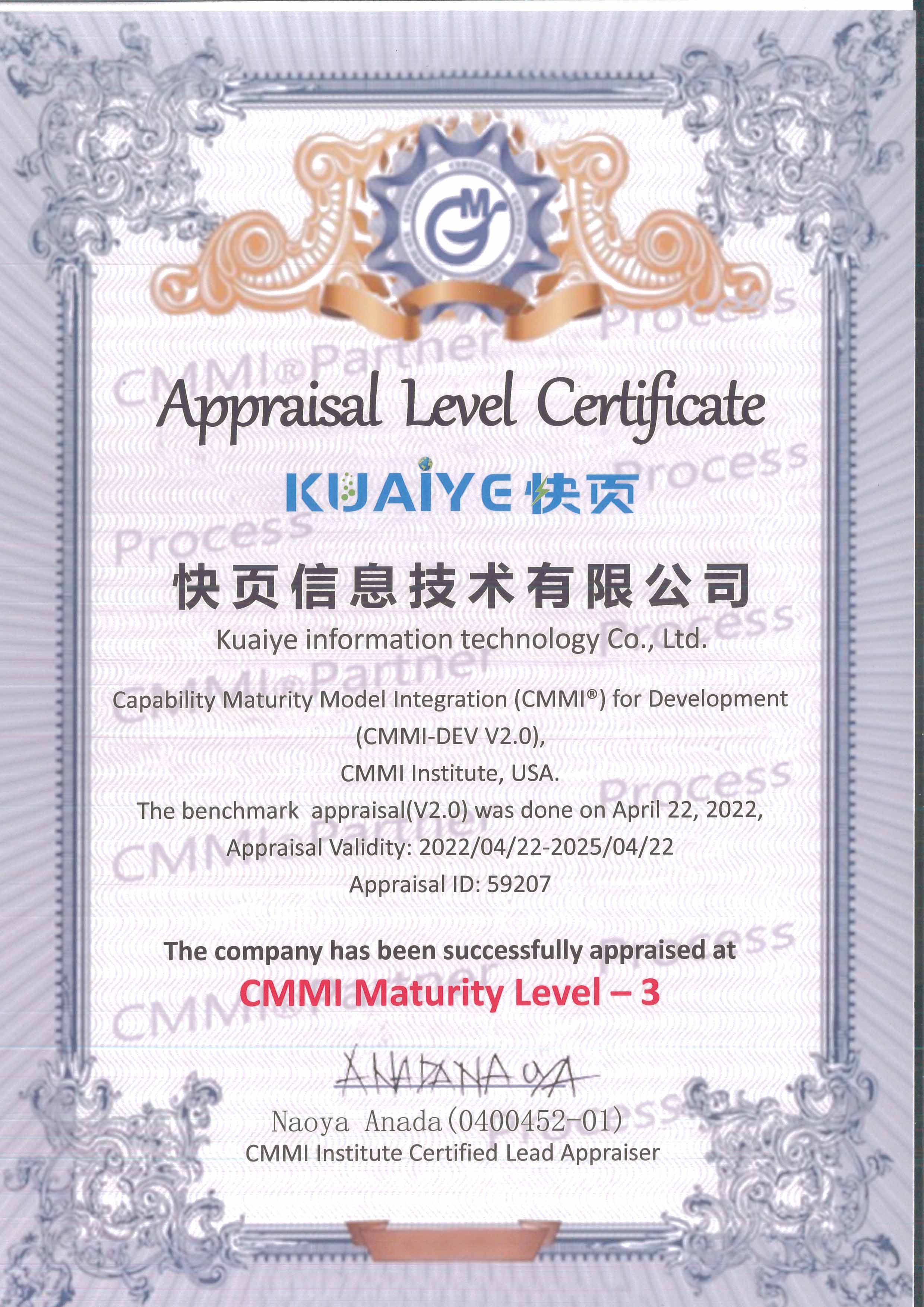CMMI全称是Capability Maturity Model Integration,即能力成熟度模型集成,是鉴定企业在开发流程化和质量管理上的国际通行标准,全球软件生产标准大多都以此为基点,并都努力争取成为CMMI认证队伍中的一分子。对一个软件企业来说,达到CMMI2就基本上进入了规模开发,基本具备了一个现代化软件企业的基本架构和方法,具备了承接软件开发项目的能力。